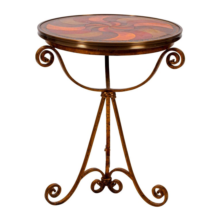 Round Leather Top Table With Iron Base For Sale At 1stdibs