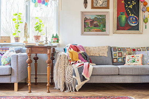Antique Side Table Between Two Sofas Buy Image 12315439
