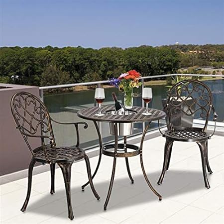 Outsunny 3pcs Cast Aluminum Patio Bistro Set Antique Style Outdoor
