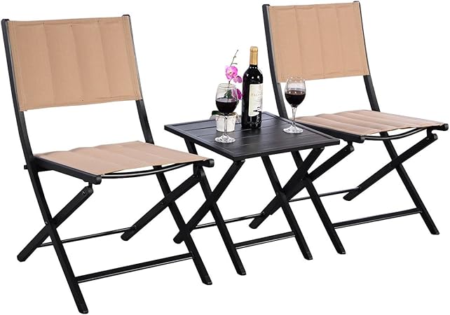 Amazon Com 3pcs Folding Square Table Chairs Set Bistro Style