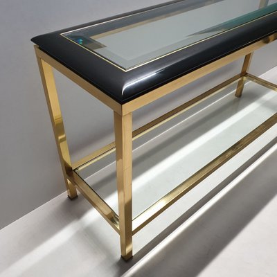French Black And Brass Console Table By Jean Claude Mahey 1970s