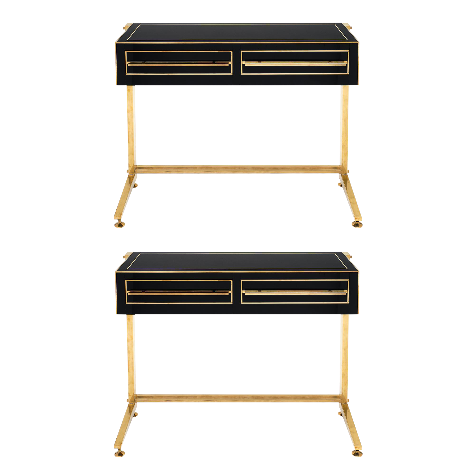 Vintage Brass 2 Tier Console Table With Black Lucite Glass Top