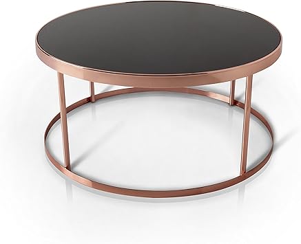 China Black Tempered Glass Coffee Table With Rose Gold Frame For