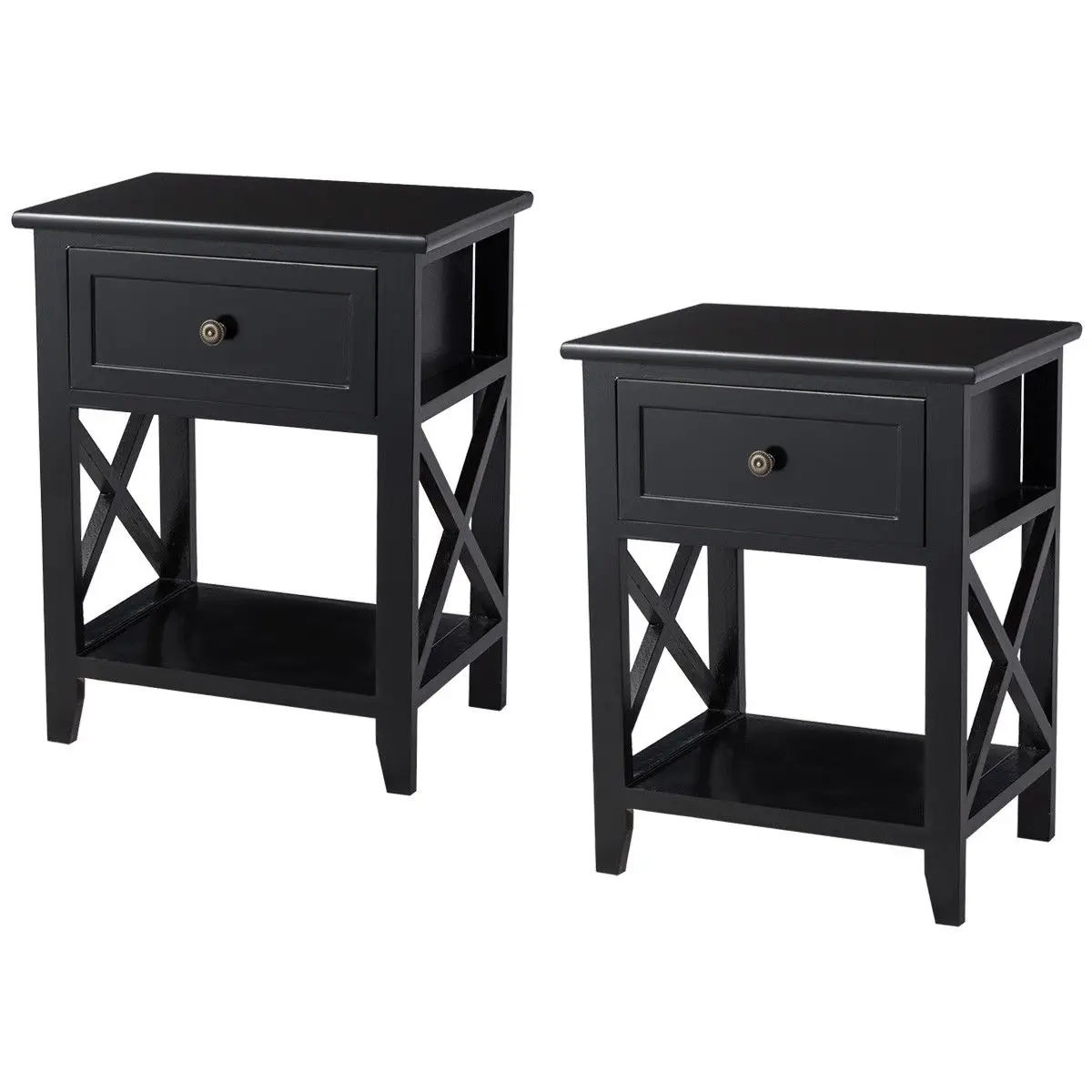 Costway 2pcs End Bedside Table Nightstand Drawer Storage Room