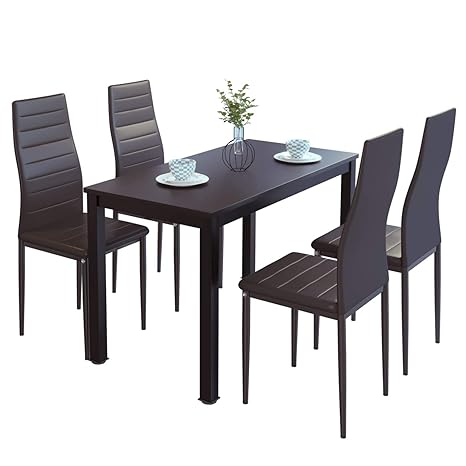 Black Dining Table And 4 Plastic Chairs Set Dining Room Set For