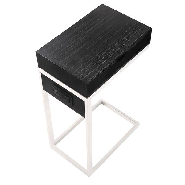 Contemporary Weathered End Table With Usb Port In Dark Gray