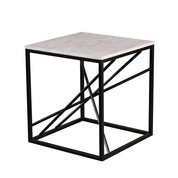 Urban Box Frame Side Table With Faux Marble And Metal White Black