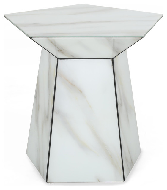 Andre Modern Pentagon Accent Table With Faux Marble Finish