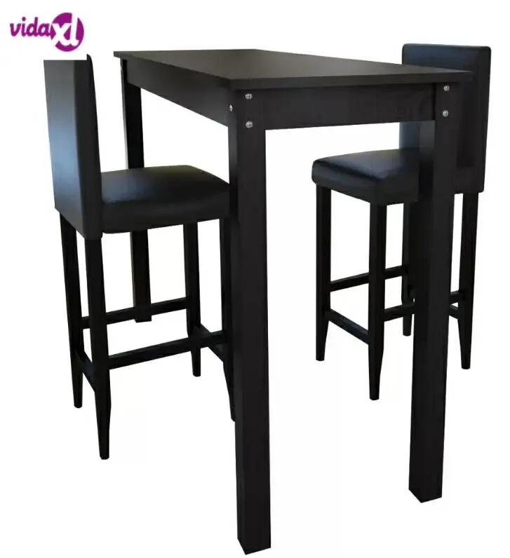 Vidaxl Black 1 Bar Table And 2 Stools Kitchen Set Modern Elegent