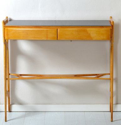 Mid Century Italian Black Glass And Maple Console Table 1950s For