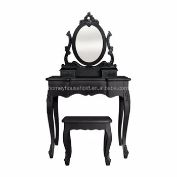 Home Furniture Mdf Top Black Vanity Dressing Table With Oval