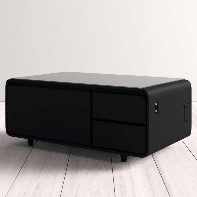 Modern Black Wood Coffee Table With Storage Square Drum Coffee