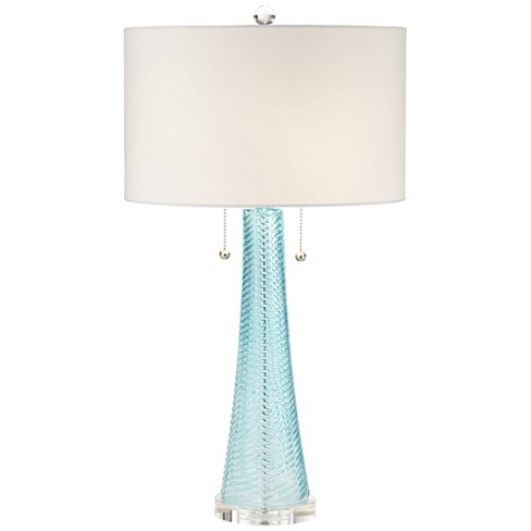 Possini Euro Design Modern Table Lamp Light Aqua Blue Textured
