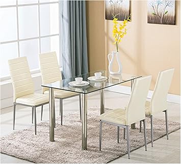 Amazon Com 5 Piece Dining Table Set W 4 Chairs Glass Metal