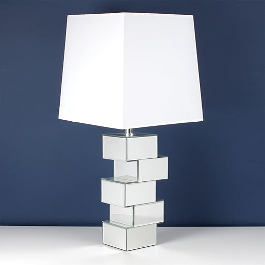 Contemporary Mirror Block Base Glass Table Bedside Buffet Lamp