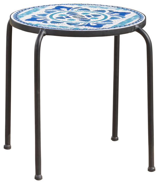 Gdf Studio Sindarin Outdoor Blue And White Ceramic Tile Iron Frame