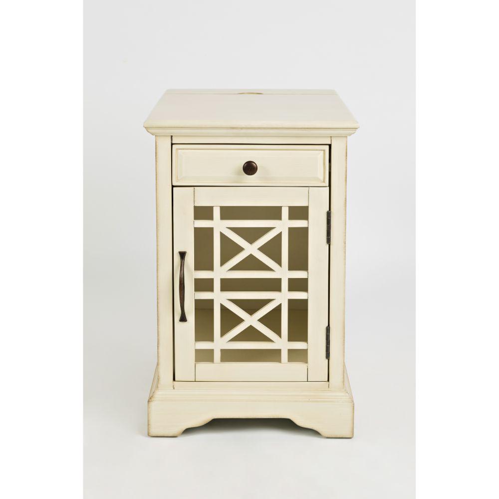 Benjara Antique Cream Wooden Chairside Table With Power Outlets