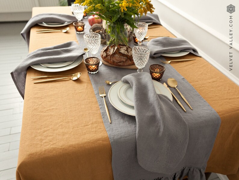 Ruffled Linen Table Runner Charcoal Grey Table Runner Other Etsy