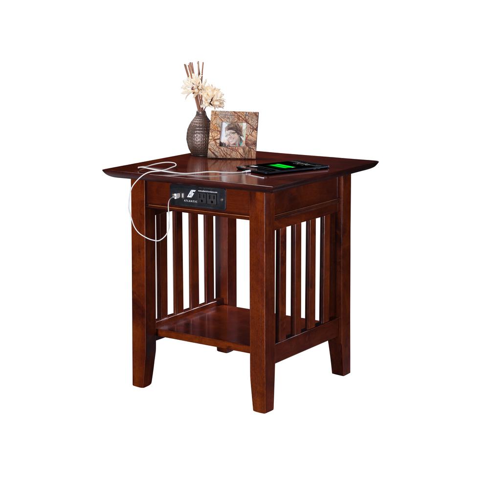 Atlantic Furniture Mission Walnut End Table With Charging Station
