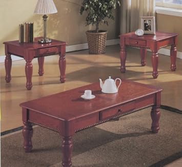 Amazon Com Cherry Finish 3 Piece Coffee Table Set Cofee Table 2