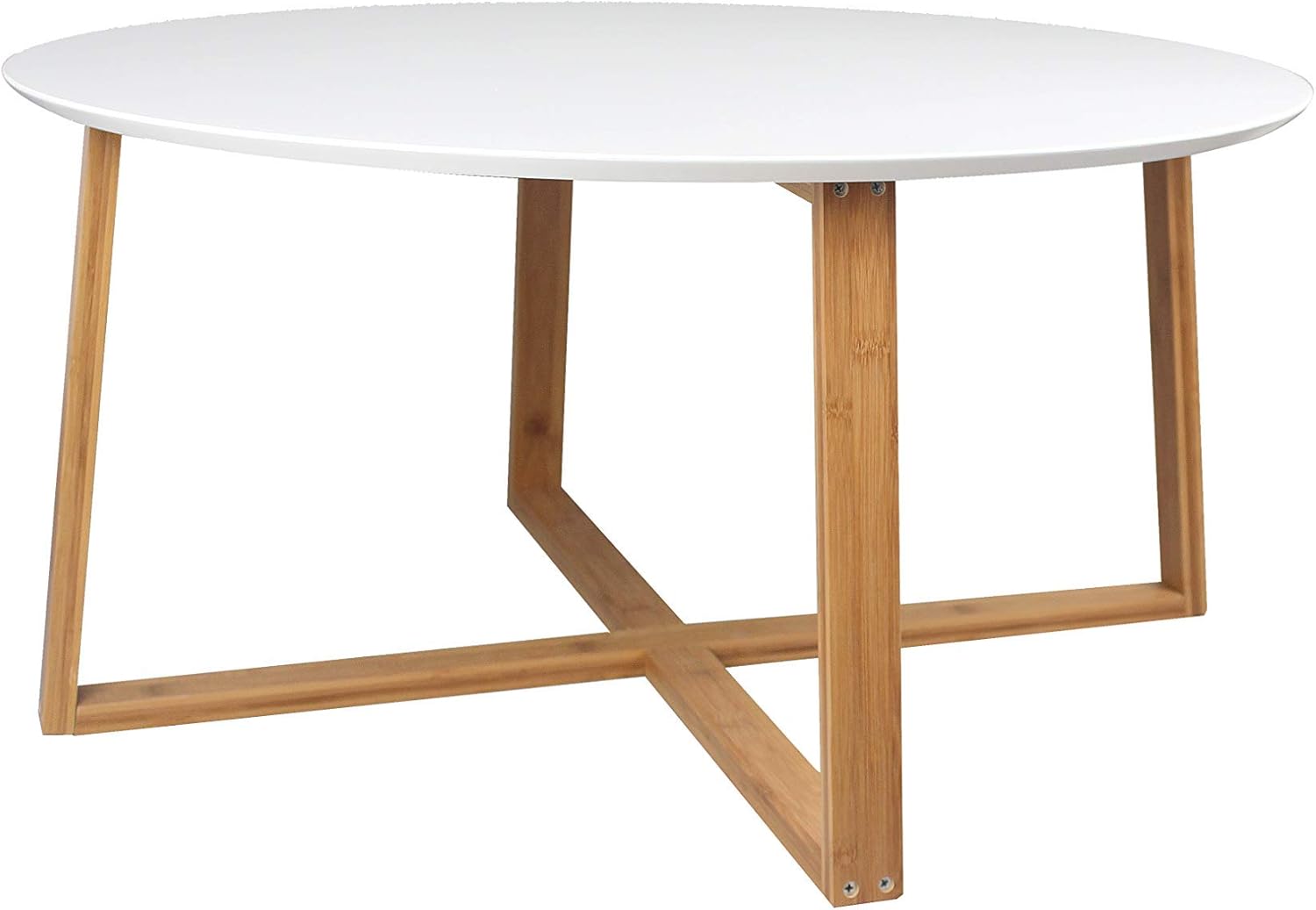 Aspect Avery Coffee Table Wooden Top Legs White Bamboo 80 Dia