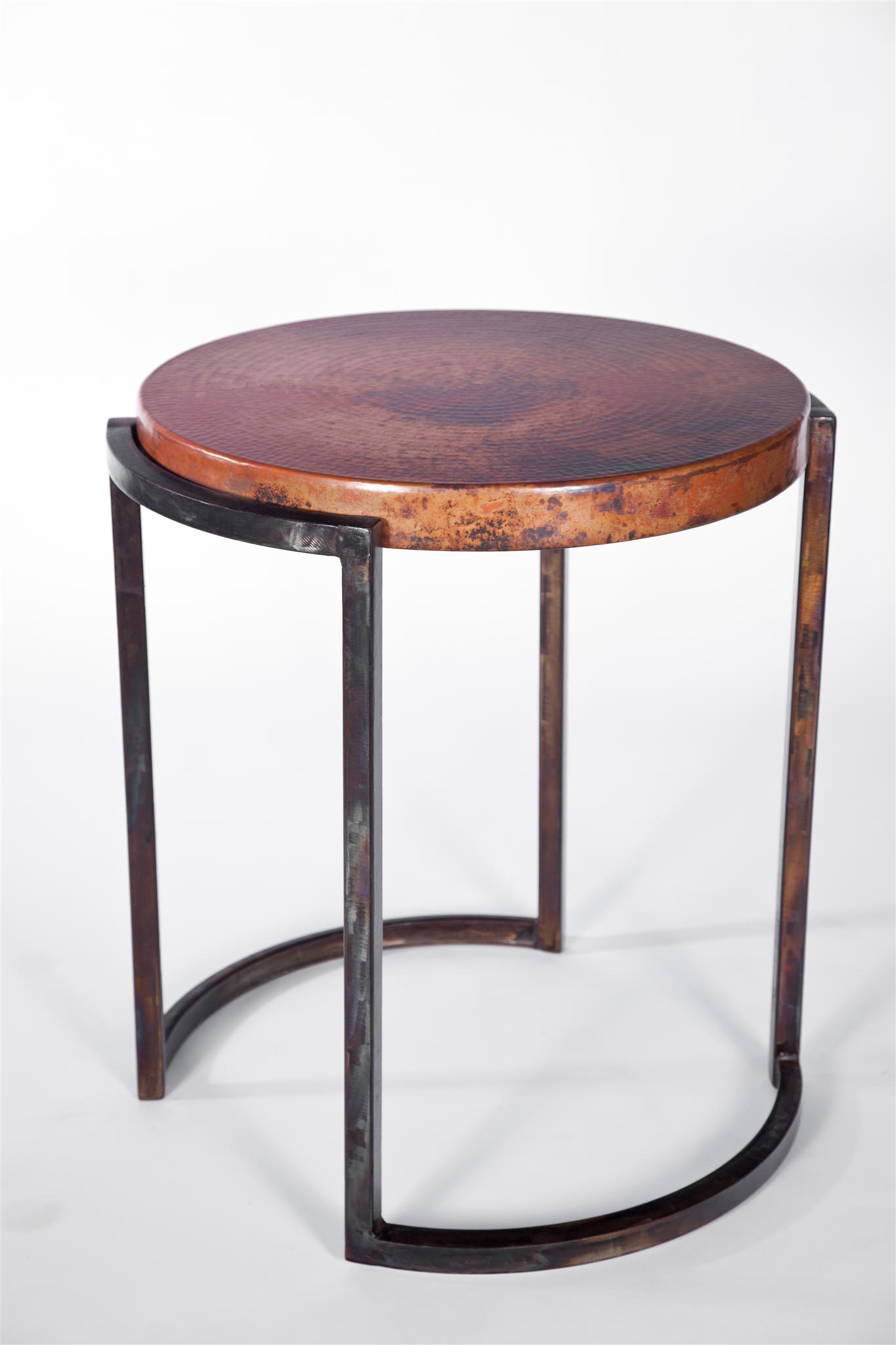 Round End Table With Hammered Copper Top Boulevard Urban Living