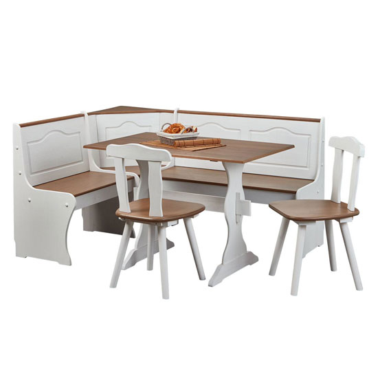Westerland Corner Bench Dining Set In White And Oak With 2 Chair