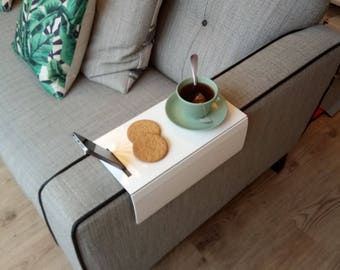 Sofatablett Hocker Sofa Couch Armlehne Ablage Tablett Weiss