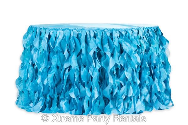 Aqua Blue Curly Willow Table Skirt Bouncy Castle Party Rentals