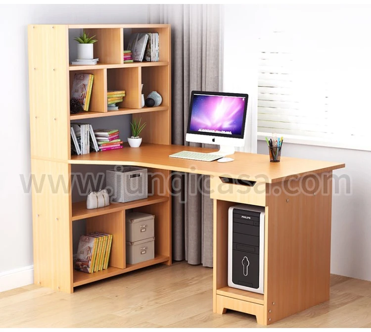 Wooden Modern Library Bookcase With Corner Study Counter Table