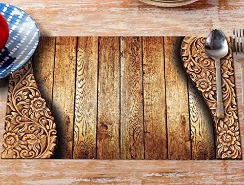 Yellow Weaves 6 Piece Wooden Style Pvc Dining Table Placemats