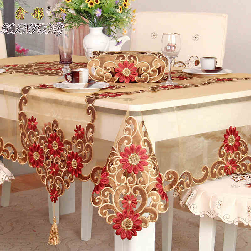 Banquet Wedding Party Tablecloth Red Floral Dinning Table Runner