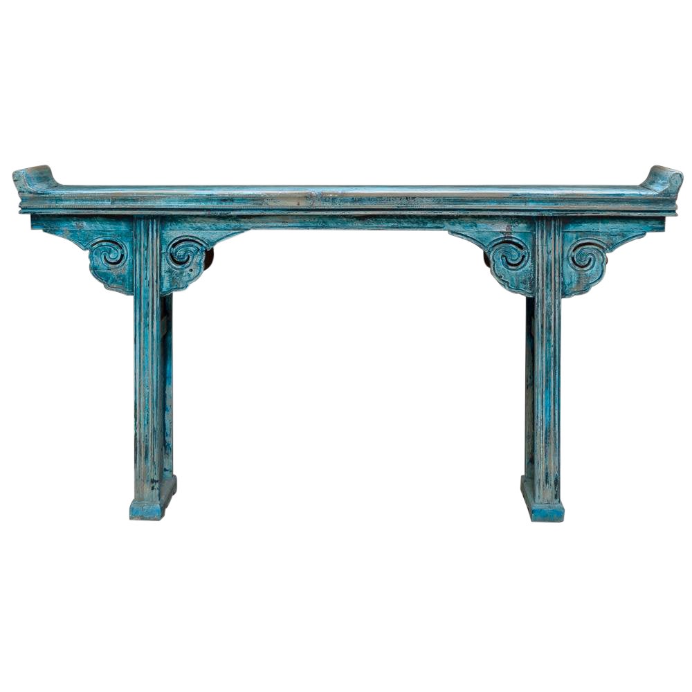 Distressed Rustic Blue Lacquer Sideboard Console Table Cabinet
