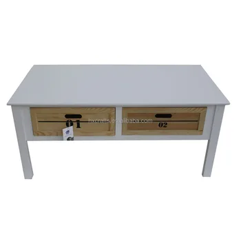 Mediterranean Style Distressed White Wooden Coffee Table With