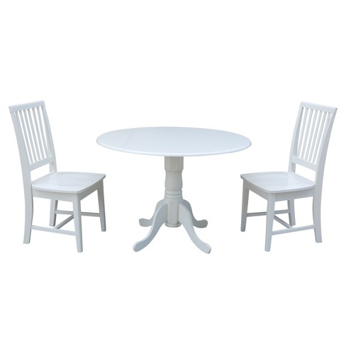 3pc 42 Dual Drop Leaf Dining Table With Two Mission Chairs White
