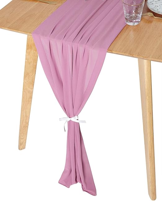 10ft Mauve Sheer Table Runner Dusty Rose Chiffon Wedding Table