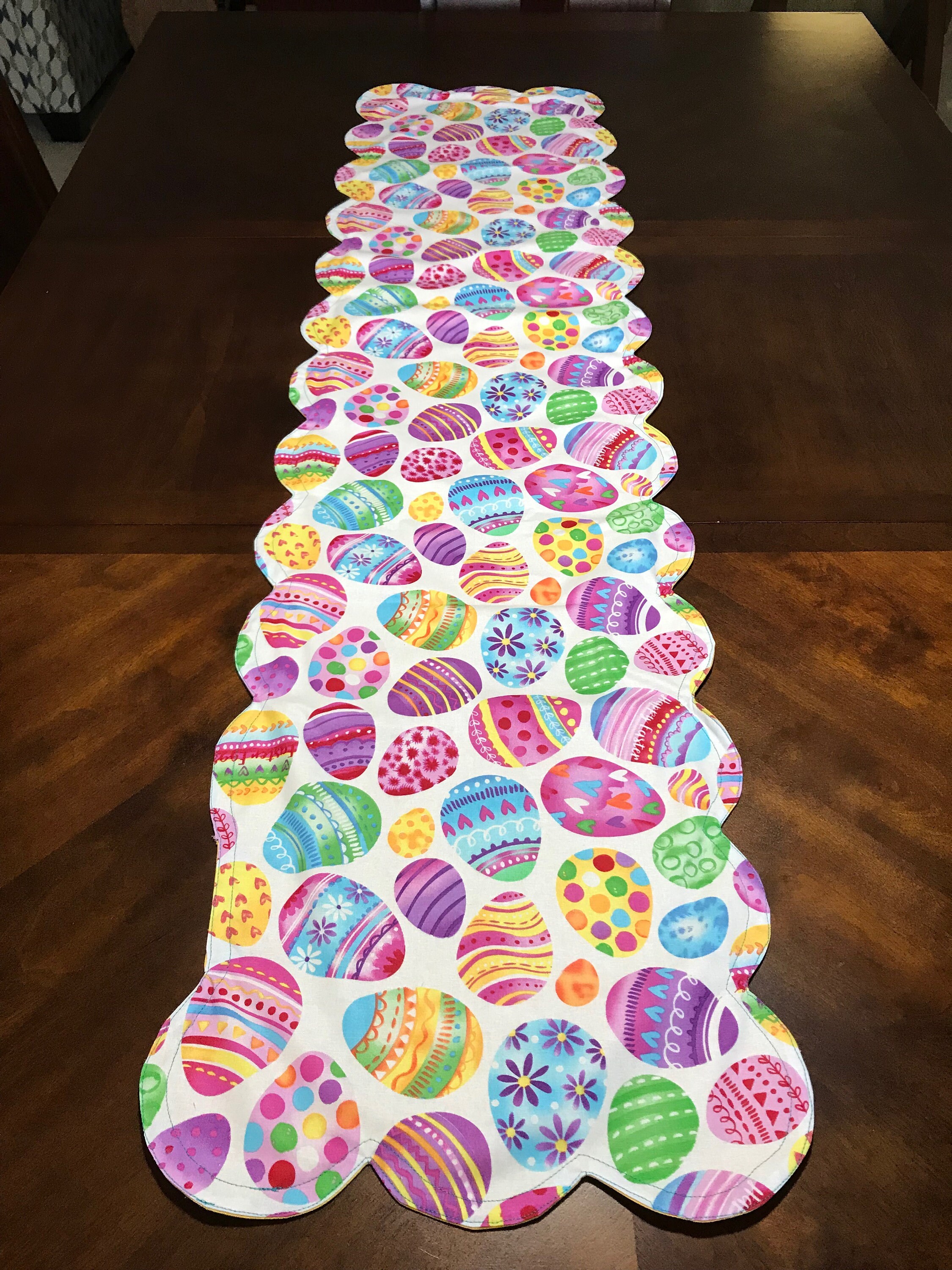 Easter egg table runner. Saved by cathy marie quilts. Choose a design and color combination that pairs well with the. Eastern table runner this table runner is great for using up leftover fabric scraps to help bring a little bit that bright and cheery feeling into your home. In terms of color white is the convention choice as is the case with most holidays.