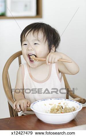 Baby Boy 18 24 Months Eating At Table Stock Photo X12427479