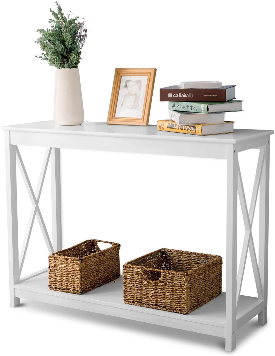 Leisure Zone Console Table Side End Table Shelf Storage Wooden
