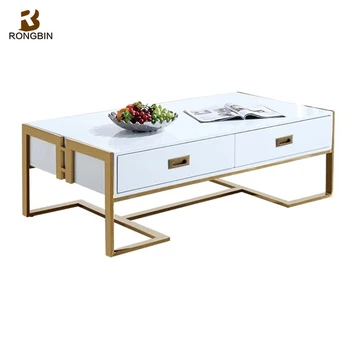 Golden Stainless Steel Base Bent Glass White Top Turkish Furniture