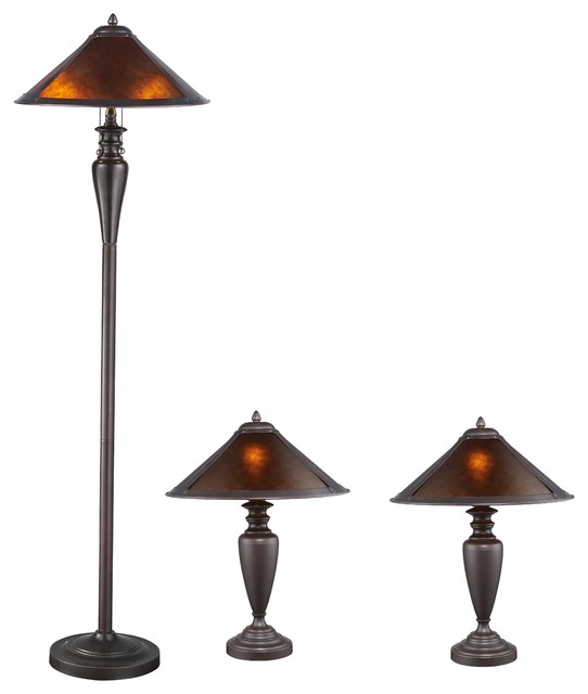 Serena D Italia Mica 3 Piece Bronze Floor And Table Lamp Set