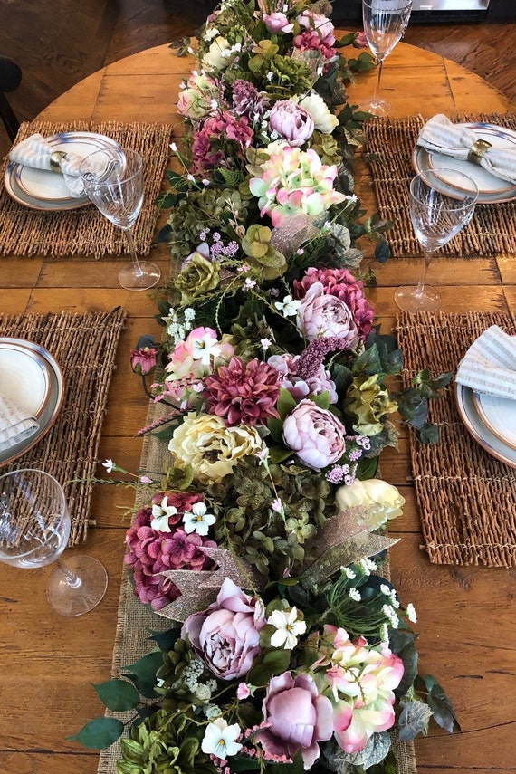 Silk Flower Garland Luxury Floral Table Runner Spring Summer Etsy