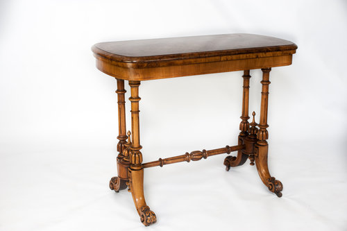 Burr Walnut Victorian Period Antique Fold Over Card Table At 1stdibs