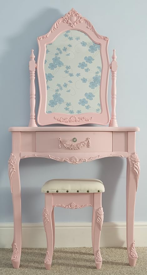 Girls Small Pink Dressing Table Desk Mirror And Stool Set