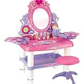 Toddler Kid Pretend Play Vanity Mirror Table Chair Cosmetic Makeup