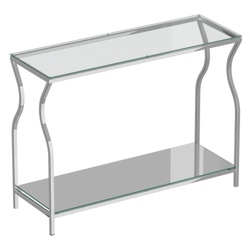Contemporary Modern Chrome Metal And Glass Sofa Console Table