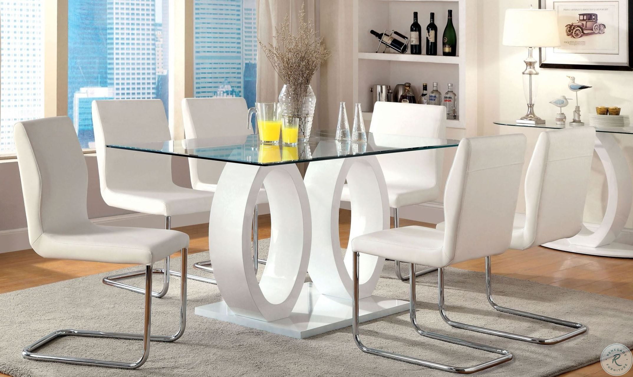 Lodia I White Glass Top Rectangular Pedestal Dining Room Set From