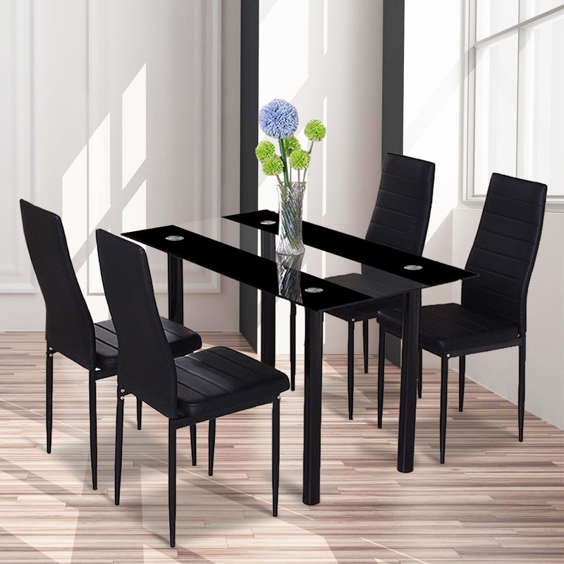 Glass Rectangle Dining Table Set And 4 Leather Chairs Seats