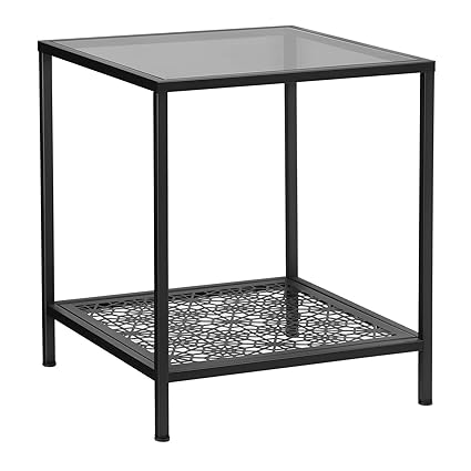 Songmics Tempered Glass Side Table End Table With Flower Pattern