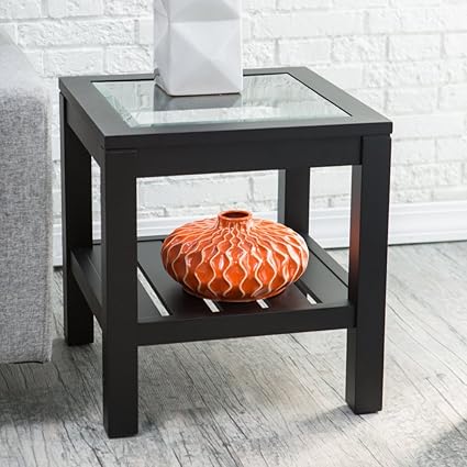 Amazon Com Sutton Glass Top End Table With Slat Bottom Kitchen